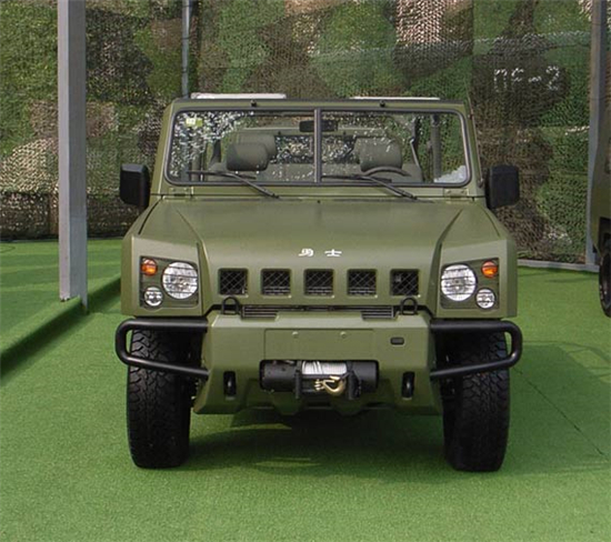 2007年8月2日,北汽控股公司在位于北京市順義區(qū)的北京汽車制造廠有限公司隆重舉行慶祝建軍80周年暨北京·勇士下線儀式。北汽勇士BJ2022型4×4軍用越野車自2007年列裝部隊以來,“勇士”越野車作為我軍第二代軍用指揮車,常年活躍在演訓(xùn)場上和邊防線上。2008年、2009年北汽勇士軍用車參加并圓滿完成汶川地震搶險,打擊暴恐勢力等多次重要軍事行動!坝率俊笔怯杀本┢囍圃鞆S有限公司自主開發(fā)的,擁有完全自主知識產(chǎn)權(quán)的中國21世紀0.5噸/0.75噸級越野車!坝率俊蓖獠吭煨褪窃谘芯苛藲W、美、日三大流派越野車造型發(fā)展趨勢的基礎(chǔ)上,結(jié)合中國文化特色和中國越野車的特點而設(shè)計的,具有原創(chuàng)性。