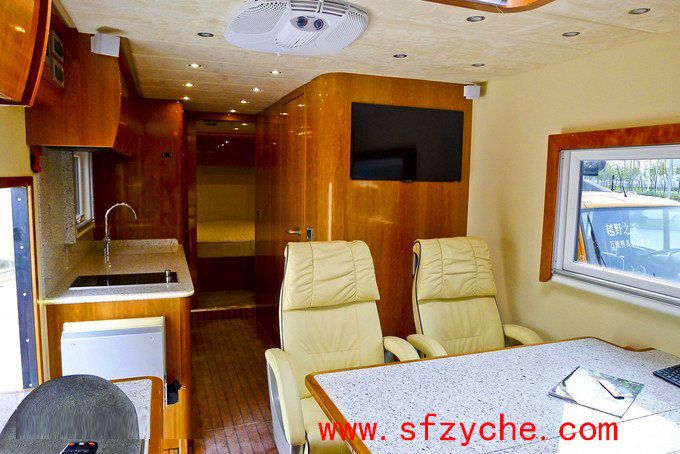 六驅(qū)越野房車車身內(nèi)整體豪華配置:在駕駛室中還有主流卡車中配備的天窗通風(fēng)系統(tǒng)和后排折疊床板,這款越野房車的后排內(nèi)部具有地板加熱系統(tǒng),獨(dú)立的會(huì)客廳,高級(jí)絨布真皮座椅具備多項(xiàng)可調(diào)功能,雖然包裹感不是很強(qiáng),但卻有一定的支撐性,更加符合越野房車的特質(zhì)。此外,中央空調(diào)、天窗與側(cè)窗外加頂部迎賓燈的點(diǎn)綴是恰到好處,前后對(duì)著的兩臺(tái)大尺寸液晶電視方面中央四位乘客觀看。在門(mén)口的兩側(cè),分別是吧臺(tái)和迷你廚房,電磁爐、微波爐、冰箱應(yīng)有盡有。車門(mén)頂部設(shè)有整車電路控制面板,可通過(guò)開(kāi)關(guān)控制燈光、車門(mén)等等。干濕分離的衛(wèi)生間分別分布在客廳旁與臥室中,其中一間設(shè)有浴盆和真空馬桶,另一間則配有恒溫淋浴,走廊的盡頭就是這間臥室,其擁有電控臥室門(mén),獨(dú)立中央空調(diào)、屋內(nèi)整體照明系統(tǒng)與液晶電視,此外整間臥室采用了實(shí)木裝潢,超寬的雙人床鋪?zhàn)銐蜍囍飨碛谩?/span>