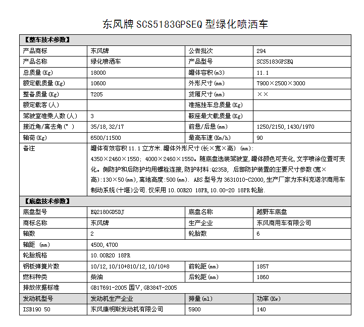 潤(rùn)知星牌SCS5183GPSEQ四驅(qū)越野消防灑水車(chē),東風(fēng)越野四驅(qū)森林消防供水車(chē)采用東風(fēng)D913新款駕駛室(可選裝老款153駕駛室),4*4驅(qū)動(dòng),ISB190 50國(guó)五發(fā)動(dòng)機(jī),4500mm/4700mm軸距,東風(fēng)六檔變速箱,10.00R20鋼絲胎,東風(fēng)商用車(chē)前后橋,罐體采用優(yōu)質(zhì)碳鋼QB235板材,罐體容積11.1立方,前沖后灑,側(cè)噴,后置工作平臺(tái)帶消防水炮,可選裝消防炮,消防泵等專(zhuān)用消防設(shè)備。主要用途:中國(guó)森林林業(yè)部門(mén)的森林消防滅火供水及利用車(chē)載消防泵消防炮進(jìn)行遠(yuǎn)程消滅森林火災(zāi)。