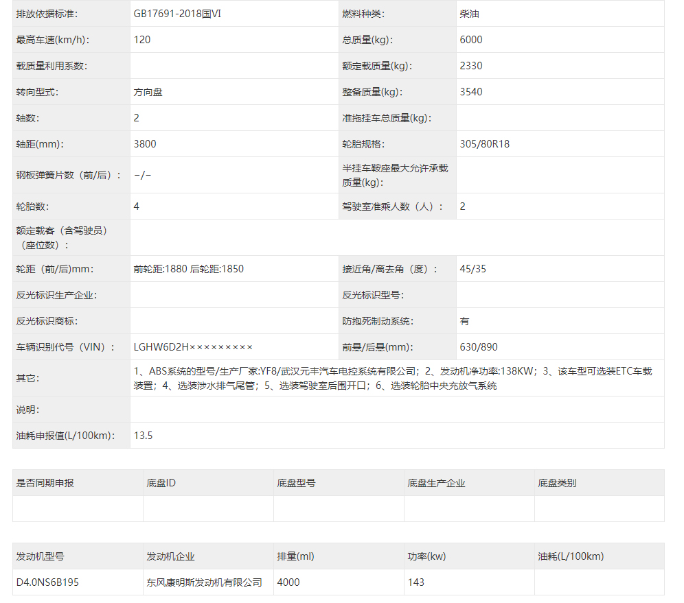 東風(fēng)猛士民用版EQ2063EYY6J型長頭單排四驅(qū)越野底盤是東風(fēng)越野車公司針對民用方面的首款軍轉(zhuǎn)民產(chǎn)品代表,其繼承東風(fēng)軍用猛士的正規(guī)血統(tǒng),品質(zhì)優(yōu)異,技術(shù)過硬。東風(fēng)猛士民用版EQ2063EYY6J采用東風(fēng)猛士M50型四驅(qū)底盤改造而成,采用東風(fēng)康明斯D4.0NS6B195型國六柴油發(fā)動(dòng)機(jī),195馬力 ,排量4L帶增壓,最大扭矩600/1100-2200(N.m/r/min);猛士5擋軍用手動(dòng)變速箱;分動(dòng)箱為四輪全時(shí)驅(qū)動(dòng)帶高低擋;軸距3800mm;整備質(zhì)量3540kg;核定載質(zhì)量2460kg;輪胎采用305/80R18MPT全鋼子午線輪胎,帶自動(dòng)中央充放氣系統(tǒng);整車總質(zhì)量6000kg,國六B排放全國可上黃牌,整車尺寸:5320*2310*1950mm;最小離地間隙388mm,最大垂直越障400mm,通過性強(qiáng),適應(yīng)高海拔極寒極熱地區(qū),全國暢行無阻,最高車速可達(dá)120km/h。
