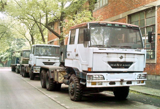 漢陽特種汽車制造廠生產(chǎn)軍用車的歷史可以追溯至上世紀(jì)60年代。當(dāng)時(shí)該廠完成了魚雷運(yùn)輸車的試制任務(wù),從而步入軍工生產(chǎn)的行列,隨后漢陽又開發(fā)了導(dǎo)彈運(yùn)輸車、舟橋車等軍用車。進(jìn)入到上世紀(jì)70年代,隨著我國汽車工業(yè)缺重少輕的矛盾日漸突出,漢陽在1972年研制成功了HY470型25噸4x2重型半掛牽引車,1979年,又成功開發(fā)出50噸的6x4牽引車。