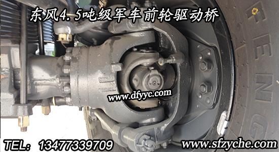 東風(fēng)六驅(qū)平頭軍車前橋采用東風(fēng)德納4.5噸級(jí)前置驅(qū)動(dòng)車橋,這種采用三肖式等速萬向節(jié)式的軍用驅(qū)動(dòng)前橋主要用于以下車型:早期的東風(fēng)3.5噸級(jí)六驅(qū)尖頭軍車EQ245、EQ2100E、EQ2100E6D等三種尖頭六驅(qū)軍車,后期主要應(yīng)用在東風(fēng)平頭軍車:EQ2102、EQ2162、DFS5160TSML型六驅(qū)軍車上。