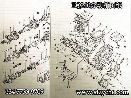 東風六驅(qū)軍車EQ240主要分動箱配件有:主動軸、高檔主動齒輪、后橋驅(qū)動軸、高檔從動齒輪帶小齒、低檔從動齒輪帶小齒、中間軸中后橋驅(qū)動齒輪、中橋驅(qū)動軸齒輪、中橋驅(qū)動軸、前橋驅(qū)動軸嚙合套、中間軸、前橋驅(qū)動軸、半圓鍵、滑動齒套限位彈簧、換擋齒套限位鋼球、高低擋滑動齒套、7208軸承、主動軸軸承7308、7309軸承、7608軸承、9249/54軸承帶隔套、分動箱油封、分動箱叉形凸緣總成、分動箱外殼加蓋總成、前加力總成、前橋驅(qū)動軸外殼等。