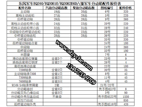 東風軍車EQ240/EQ2081E/EQ2082E6D六驅(qū)軍車分動箱配件報價表