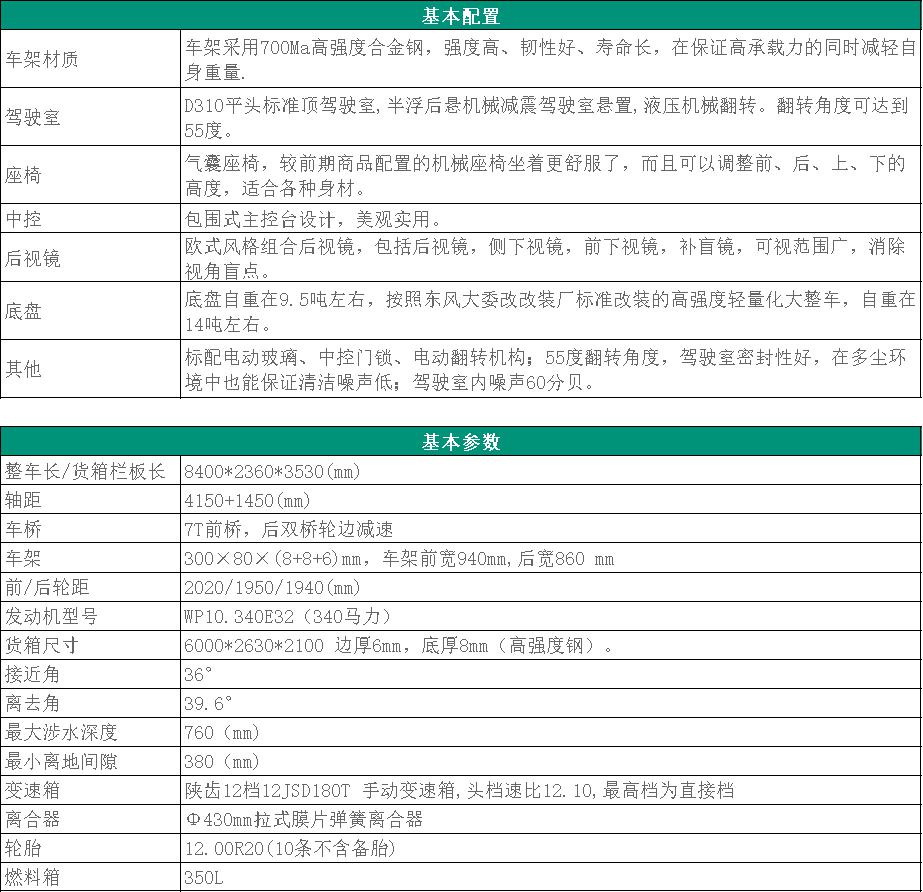 相關(guān)車型東風(fēng)大力神KC六驅(qū)自卸車配置參數(shù):DFL3251KC型六驅(qū)大力神自卸車,采用天龍大力神KC駕駛室,三段式保險(xiǎn)杠,液壓翻轉(zhuǎn),帶原廠空調(diào),濰柴國三WP12.340型340馬力發(fā)動(dòng)機(jī),法士特十二檔變速箱,軸距4500+1400mm,株齒分動(dòng)箱,北奔9噸前驅(qū)動(dòng)橋,選裝13/16噸輪減中后橋,輪減、差速鎖,大梁300mm自卸專用梁,輪胎12.00R20鋼絲胎10+1條,5.6米-6米自卸貨箱,車廂采用邊10底12mm鋼板,加裝淋水器。