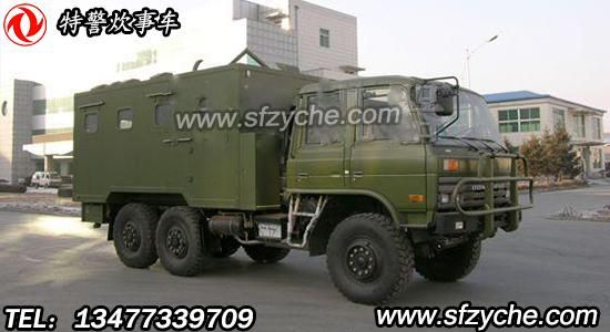 東風(fēng)六驅(qū)越野炊事車是采用東風(fēng)軍用二類汽車底盤改裝而成的后勤飲食保障裝備,該車機(jī)動性能好,專業(yè)性強(qiáng),自動化程度高,自然環(huán)境適應(yīng)性強(qiáng),并能在駐車和行車時進(jìn)行炊事作業(yè),可保障執(zhí)行野外任務(wù)部隊(duì)的飲食和飲水供應(yīng)。
